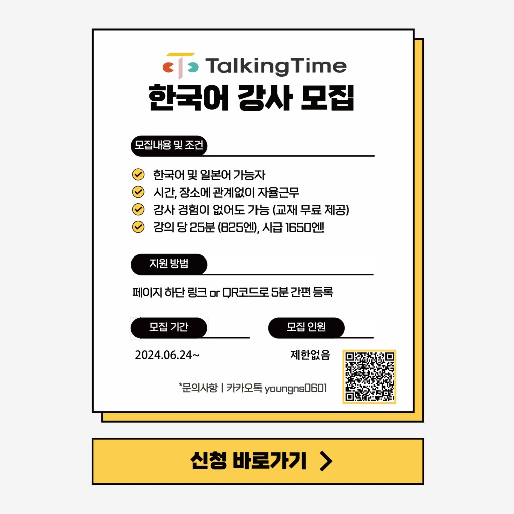 学研グループ의 외국어 레슨 서비스인 Talking Time에서 한국어 강사를 모집합니다!