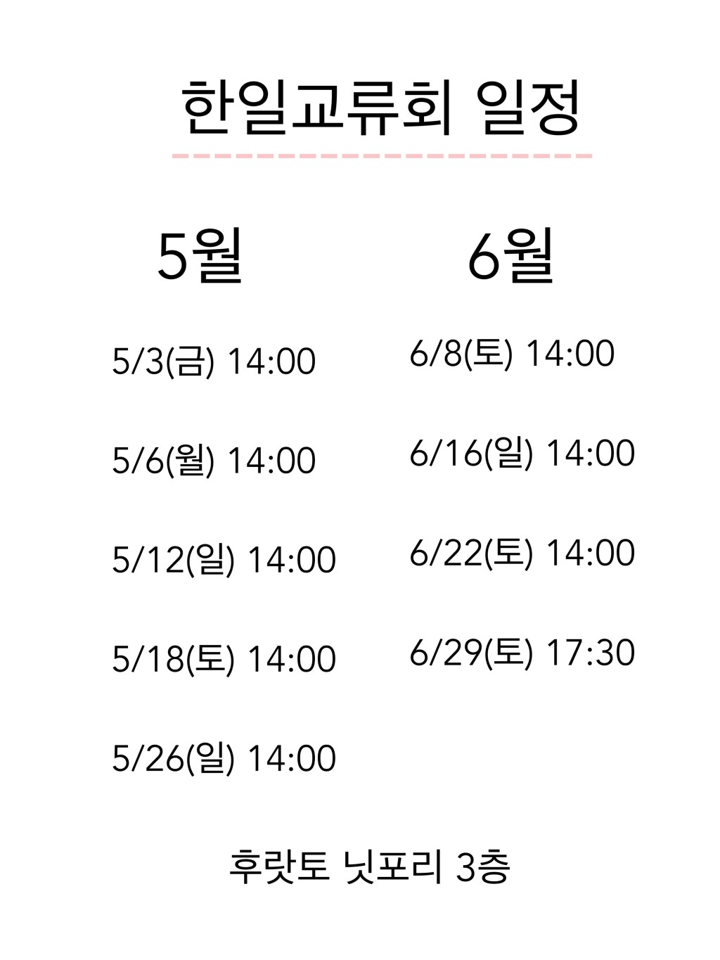 내일 5/6(월) 한일교류회 도쿄 닛포리