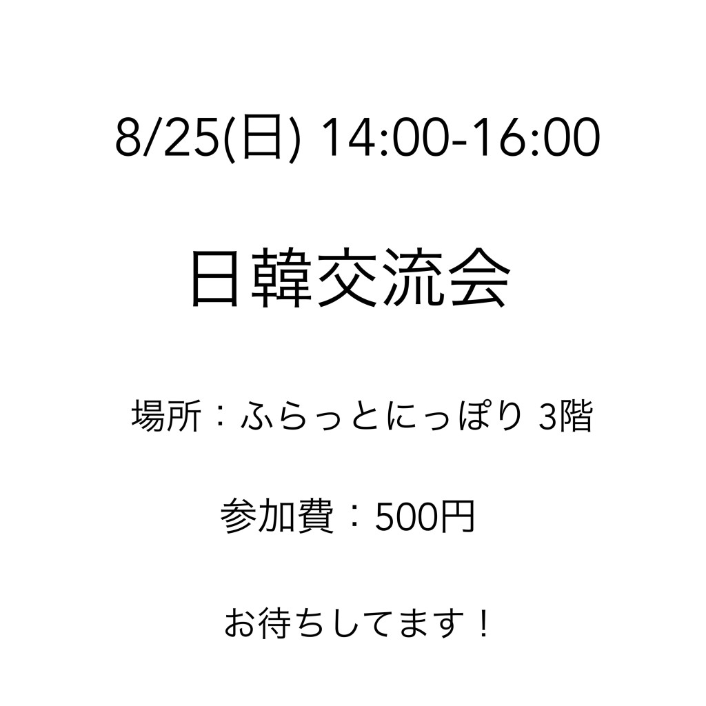 내일 8/25(일) 한일교류회 도쿄 닛포리 같이 이야기해요.