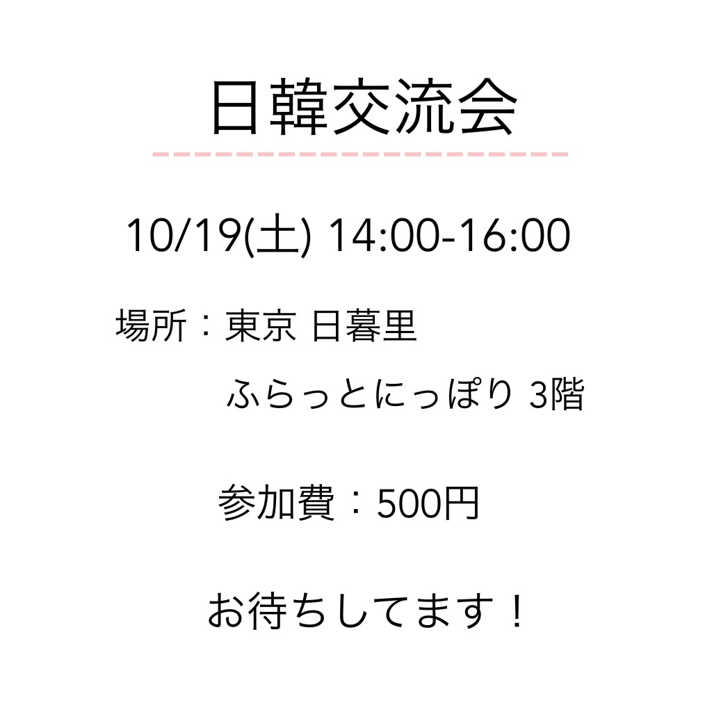 내일 10/19(토) 한일교류회 도쿄 닛포리 참가자를 모집합니다.