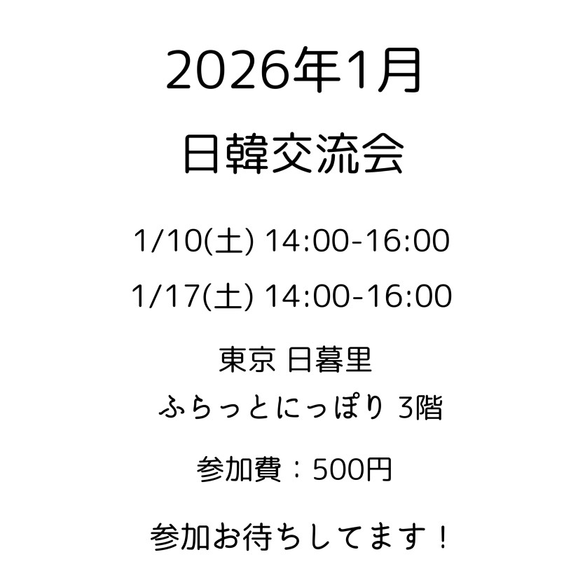 1/10(토) 도쿄 닛포리 한일교류회 참가자를 모집합니다.