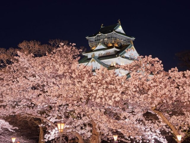 봄의 벚꽃 시즌에는 오사카성을 배경으로 약 4,000 그루의 벚나무가 만발하며 공원을 물들입니다.